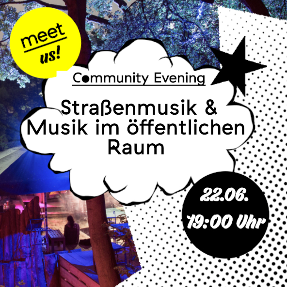Wenn ich Musik im öffentlichen Raum in Berlin live spielen möchte – woran muss ich alles denken? Was sind die Erfahrungen anderer Straßenmusiker:innen und was kann ich davon lernen? Welches Equipment ist zu empfehlen? Was ändert sich für meine Musik und Performance, wenn sie im öffentlichen Raum stattfindet? Welche Orte in Berlin eignen sich gut zum Musik spielen? Was sind die gesetzlichen Rahmenbedingungen – was ist erlaubt und was nicht, welche Genehmigungen brauche ich und wie kann ich diese beantragen? Was kann ich alles von vornherein mitbedenken und im Blick haben – hinsichtlich des Ortes, der Nachbarschaft und der Umwelt? Wie kann ich am besten auf Gesundheit und Sicherheit der Zuhörenden oder Mitfeiernden achten, besonders auch jetzt in der Pandemie? Was ist der Unterschied zwischen Straßenmusik und einem öffentlichen Konzert oder Party, und wie unterscheiden sich entsprechend die Regelungen und auch meine Planung? Muss ich mich auch um so Dinge wie Gema und Steuern kümmern? Was sind Erfahrungen im Umgang mit Polizei und städtischen Behörden? Darüberhinaus möchten wir auch über aktuelle Aushandlungsprozesse zwischen Musikschaffenden und Verwaltung/Politik in Berlin sprechen, die Situation für Musik im öffentlichen Raum zu verbessern.