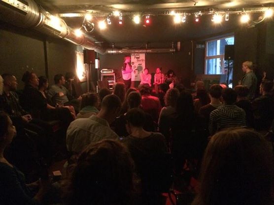 The bottom line of the discussion was that all discussion participants are organizing and promoting shows out of a cultural and artistic motivation, for their love of music, and definitely not for the money. It became clear that it is not possible to do it for the money anyway. DIY concert and party promotion in Berlin is a cultural activity and expression, and people do it because they love to do it. This statement got the most clap of hands of the night. Sebastian made some suggestions at the end of the discussion, like a Berlin-specific award (Spielstättenpreis) for music venues and promoters, that would make it a bit less financially stressful to experiment and to make music culture.